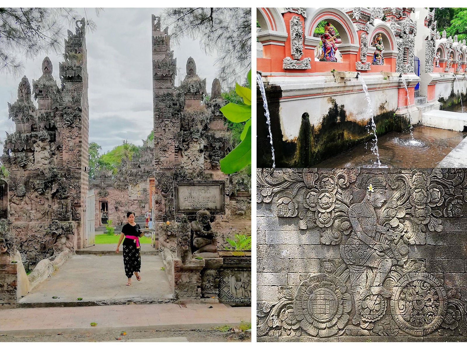 De Tempel zorgt voor de bescherming van de gewassen bij de droge landbouw, zoals koffie, thee en cacao, bij de ingang staan rijen Ramayana beelden (zie foto). In de Tempel is een stenen reliëf te zien van een man op een fiets met bloemen in de wielen.