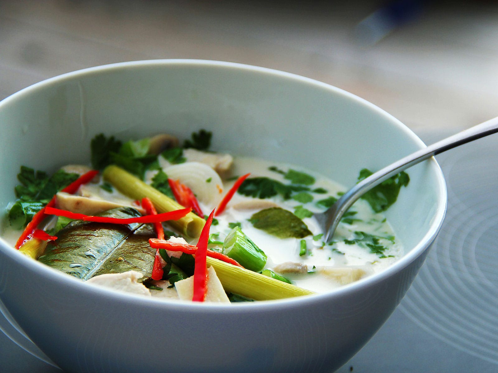 Het lekkerste Aziatische gerecht is lastig kiezen, maar een authentieke Thaise tom kha kai behoort tot mijn favorieten. Een lekkere pittige kokossoep met kip, paddenstoelen, rode peper, laoswortel, citroengras, limoenblad en koriander. De combinatie van licht zurig, een beetje zoet, maar ook zout en romig is perfect. Niet voor niets is deze soep wereldberoemd!